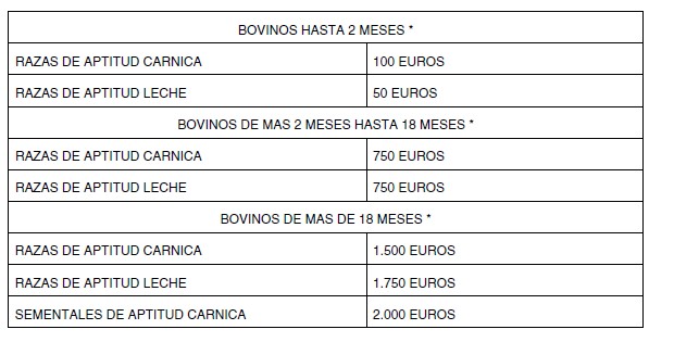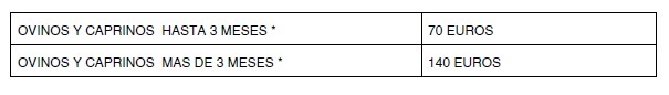 b) Las muertes de ovino y caprino con las siguientes cuantías:
