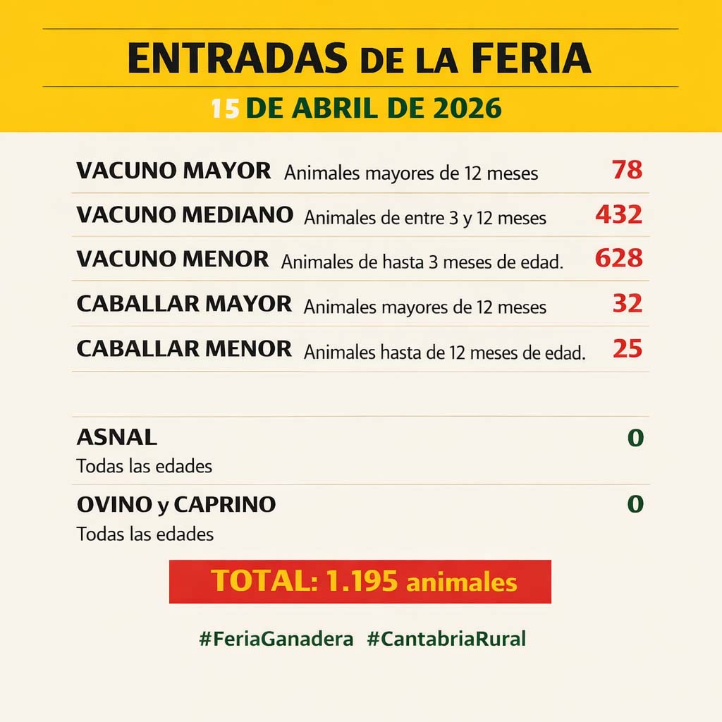 Con una oferta bastante superior a la de la semana pasada, registrándose 1.195 animales, en la feria de esta semana se han comercializado en similares formas similares los tres sectores, el de la recría, con agilidad en general pese a la menor demanda, el del abasto, vendiéndose rápidamente la escasa oferta gracias a la presencia de compradores habituales, y también de manera muy ágil el sector del vacuno de leche.