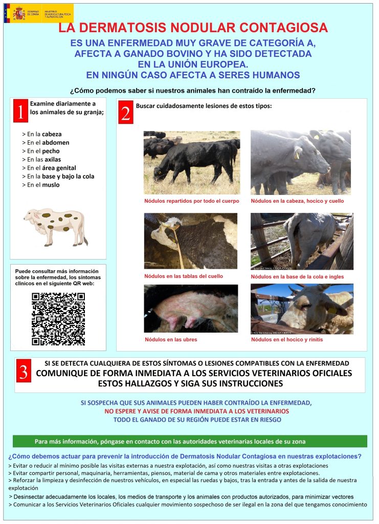 La dermatosis nodular contagiosa es una enfermedad vírica que afecta al ganado bovino y se transmite por vectores hematófagos como moscas, mosquitos y tábanos. Para reducir el riesgo de propagación, es esencial aplicar medidas de bioseguridad ambiental y productos desinsectantes autorizados.