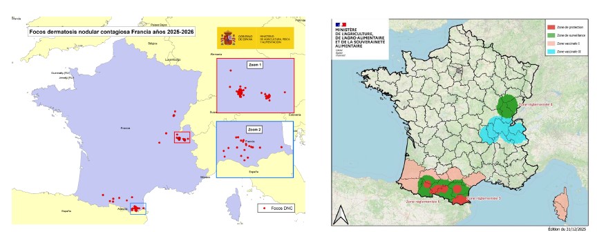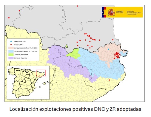 Esta información ha sido comunicada en la reunión mantenida el 19 de enero con la Subdirección General de Sanidad e Higiene Animal y Trazabilidad del MAPA, en el marco del seguimiento de la situación epidemiológica de la Dermatosis Nodular Contagiosa (DNC). Se trata de información actualizada a 15 de enero de 2026.