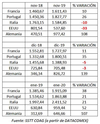 Si comprobamos los últimos datos de exportaciones de quesos a nuestros principales destinos comerciales, vemos que este hipotético descenso en las exportaciones no se observa de una manera tan crítica. Datos publicados por fuentes oficiales: